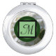 Pretty white hydrangea petal leaves with a hint of a green leaf. Personalize with your monogrammed initial in black script. Green shades in geometric circle and square shapes. Lovely compact mirror as a gift to someone or to yourself. Original Photography and Designs by TamiraZDesigns.