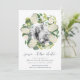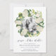 Our White Hydrangea save the date card frames your favorite engagement photo with a round wreath of painted watercolor hydrangea flowers in white, accented with lush greenery and chic calligraphy lettering. A modern and elegant choice for spring or summer weddings. Personalize with your names, wedding date, location and wedding website using the fields provided.