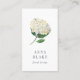 Elegant vertical business cards for florists, floral designers, wedding planners or other wedding professionals feature a watercolor hydrangea blossom illustration in green and white, with your name or business name beneath. Add your full contact details to the reverse side in white on a contrasting smoky blue background. Includes three social media icons and a template field for your social media handle.