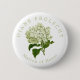Help your wedding party get to know each other with these beautifully simple and fun wearable buttons featuring easy to customize, elegant, arched name text the title role they'll play on your wedding day. Chic sage green text encircles an antique illustration of a white hydrangea flower in pretty, grandmillennial, garden style.