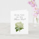 A proposal card for your flower girl, this modern white card features an antique white and green hydrangea flower stem illustration with classic and easy to personalize text letting you choose how to "propose" to your bridal party members.