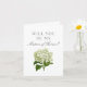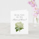 A proposal card for your matron of honor, this modern white card features an antique white and green hydrangea flower stem illustration with classic and easy to personalize text letting you choose how to "propose" to your bridal party members.