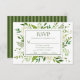This charming and elegant RSVP card with beautiful, wispy, multi-hued white hydrangeas and stunning green foliage and coordinating green striped back is perfect for enclosing with your invitations. Your guests will find it easy to respond to your wedding. It's an excellent choice for any spring or summer bride. You can easily make it your own by selecting Personalize this template and typing in your response deadline. In seconds you will see your unique and stunning RSVP cards! Also, having the entrées selected will help with the catering at your reception.