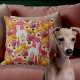 White Italian Greyhounds with Pink Flowers Throw Pillow