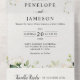 Elegant white ivory floral wedding Invitation featuring elegant bouquet of white , ivory, cream rose , and sage green eucalyptus leaves and elegant watercolor bouquet.