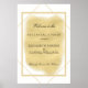 Modern contemporary formal elegant style rehearsal dinner sign in white gold and ivory with frame, geometric shapes and watercolor faux gold brushed splash.