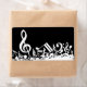 Perfect for the music lover or musician with an eye-catching modern design featuring white jumbled musical notes and a large treble clef on a classical black background.