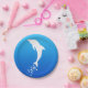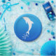 White Jumping Dolphin With Bubbles cute white dolphin silhouette preparing to jump from the water on gradient blue sea background