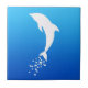 White Jumping Dolphin With Bubbles cute white dolphin silhouette preparing to jump from the water on gradient blue sea background