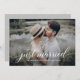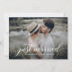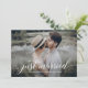 Just married! Announce your wedding to family and friends with this photo announcement card. It features handwritten script overlay, heart and simple typography. Personalize by adding names, date, venue and message. This script Just Married card is also perfect for elopements.