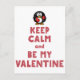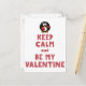 Red typography text Keep Calm and Be My Valentine postcards with Valentine penguin printed on white background
