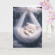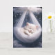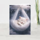 White Kitten Hanging from Tulle Hammock and Cloud Card