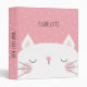 Pink binder with a white cat with a pink nose and cute pink freckles against a pink background with white dots. Add your child's name!