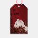White kitty cat with a red Christmas background all nestled in red Christmas garland cat lovers Christmas holiday gift tag