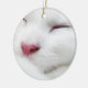 Lightweight, smooth, pure white ornament with nice sheen. Perfect size to be seen from across the room ... and to attract closer inspection! Price was great for ordering enough for the whole family! Clear, bold black design just as requested. Matches the order exactly. Just so nice!