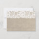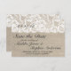 This custom wedding invitation is the perfect combination of traditional and trendy. The burlap-look background is perfect for a rustic or vintage themed wedding and the lace-look accent adds a classic, romantic touch. Coordinates with full collection of matching invitations, RSVP cards, custom postage, and more! Email me for custom colors! NOTE - This is a high-quality image of burlap, lace, & ribbon; this invitation does not contain actual burlap, lace, or ribbon. Thanks!