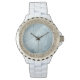 An elegant wrist watch with an ethereal fantasy image of delicate white lace.