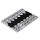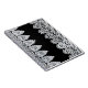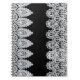 White lace forms a delicate border against black notebook