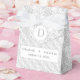 Design features the appearance of white lace as background to the monogram of couple's last name. The first names of couple along with wedding date are displayed below. Text is displayed against a white backing. Very elegant. Designed to coordinate with the White Lace Catholic Monogrammed Wedding Suite collection.