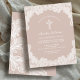 White Lace on Pale Brown Baptism Invitation