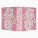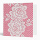 Custom designed pretty binder made from a detailed photograph of two vintage white lace floral roses on a pink background. Not actual lace but rather a photograph of real lace. Perfect for wedding albums. Makes a nice Mother's Day gift for women of any age.
