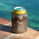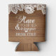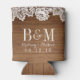 White Lace Rustic Barn Wood Monogram Wedding Drink Can Cooler