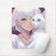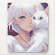 Enjoy serene artistry featuring a white cat and a lady in white, exuding elegance and mystery.