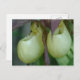 Elusive early spring white lady slipper orchid flowers pair customizable nature postcard. Photography by Susan. Click on Customize to add text to the front or back. If you have any questions or requests, please contact me. Please visit Smilin' Eyes Treasures to see more flower, animal, nature, and digital art cards and gifts for home and office. Links to all of my stores are located on my Profile page.
