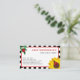 Cute mom calling card for your playdates with your name in big bold red letters, and your contact info in a fun black font. Add your children's names in a charming script. All against a white background framed by a red border and black and white stripes. A ladybug sits on a bright yellow sunflower in one corner, and another ladybug sits on a green twig of leaves in the opposite corner. The back features red and white polka dots.