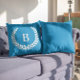 Change the pretty azure blue solid color background on this white laurel wreath monogram design to create your own throw pillow. Modern monogram style font. You can change that font.