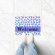 Welcome visitors to your home with this stylish and sophisticated periwinkle lavender purple, turquoise and white leopard skin pattern door mat. This door mat is customized with the word Welcome that you can change to another word or name. A periwinkle lavender purple strip gives an area for personalization and a pop of color. Enjoy this popular and contemporary design that will add a trendy home decorative accent. This leopard design is available in several color combinations in this store.