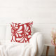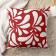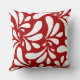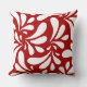 White Leaves Art Pattern on Red Background Throw Pillow