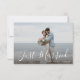 white lettering Just married wedding announcement