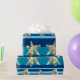 Beautiful floral inspired design with flowers and blue stripes.Beautiful wrap for occasions and celebrations.