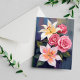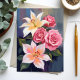 White Lillies Pink Rose Bouquet Watercolor Floral Painted Card