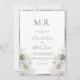 White Lilly Botanical Monogram Elegant Wedding Invitation