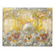 The design features a dreamscape design, a whimsical blend of white & orange Lilies, and blood red flowers. All blended together with a beautiful elegant 3 gold frames decorated with golden trim. On both sides of this astonishing collage there are majestic gold swirled tree branches. The background behind this beautiful collage, is gold background, combined with Damask Art pattern.