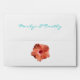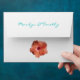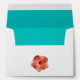 This bright white linen envelope with accents of turquoise and orange, has a coral hibiscus on the back of it to coordinate with the wedding invitation and other items shown below. Customize it to have your own return address on it.