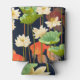 Elegant white lotus and fish blend in an artistic Asian-inspired decor.