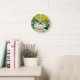 White Lotus Flower Landscape, Zen Round Clock