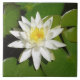Square ceramic tile with an image of an extreme realism watercolor painting of a spectacular white lotus flower.