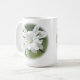 White blossoming magnolia flower against green background. Textured photography. Magnolia is the very old plant which was found in fossils dating back 20 million years. The flower symbolizes endurance, eternity, long life, beauty and magnificence. White magnolia flower stands for purity and perfection. Coffee mug