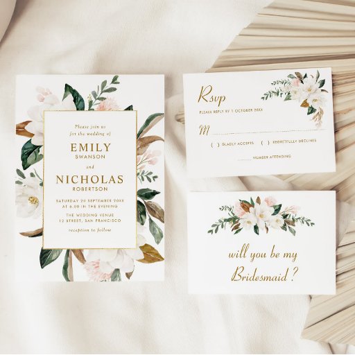 a lovely green envelope with painted watercolor white magnolia flowers. The purple color on this envelope can be personalized.