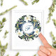 White magnolia wreath surrounds blue, customizable monogram initial. Background of celestial blue, vegan embossed leather with stitched look.