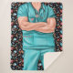 If you're looking for a perfect gift for someone in the medical field, a cozy blanket adds a decorative and warm touch to a room and is a fundamental item for any home. This blanket comes with a fun illustration of a handsome white male nurse or doctor showcasing his upper body in light teal scrubs, with his arms crossed and a stethoscope draped around his neck. The backdrop features various medical instruments against a black background. You can easily personalize this fun image with the name of your favorite certified medical assistant, CNA, MD, RN, dentist, or school nurse. Perfect for gifting this holiday season, whether for Christmas, Hanukkah, Kwanzaa, a birthday, or a heartfelt thank you to a favorite doctor or nurse.