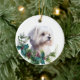 White Maltese Dog Portrait Holly Wreath Ceramic Ornament