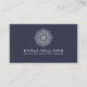 Elegant white mandala and small dots pattern on dark blue background. Customizable wedding planer business card template.