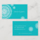 Stylized white mandala on turquoise, for a yoga instructor, meditation instructor, spa or other holistic practices. A modern style mandala. One of our most popular mandala designs.