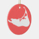 A crisp white silhouette of the map of Nantucket is set against a faded "Nantucket Red" background on an ornament that makes a great keepsake to hang in a window or decorate your Christmas tree.