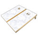White Marble Background Cornhole Set